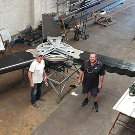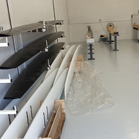 Kohlefaserblätter und -streben, Konstruktion aus Flugzeugaluminium und verzinktem Stahl.