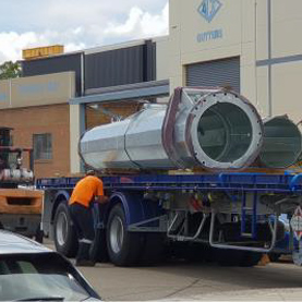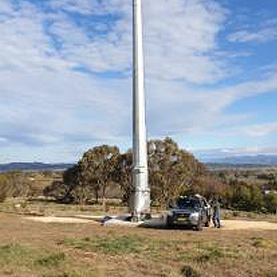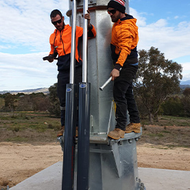Stahlturm, der durch zwei Hydraulikzylinder angehoben wird. Beton- oder Stahlfundament (abhängig von den örtlichen Gegebenheiten).